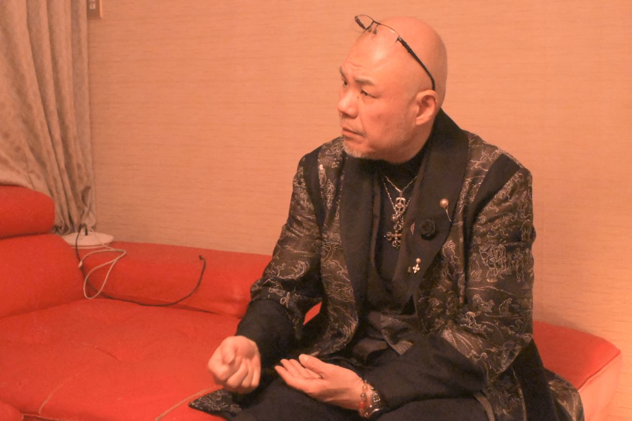 お寺に入って出迎えてくださったのは、一般的にイメージされるお寺の住職とは全く異なるファッショナブルな装いの方。一同、お洒落なお寺空間にも面食らいつつ、インタビューがはじまりました。